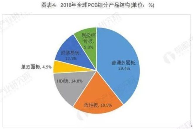 根據(jù)Prismark的統(tǒng)計(jì),2018年全球PCB細(xì)分產(chǎn)品的市場(chǎng)結(jié)構(gòu)如下:
